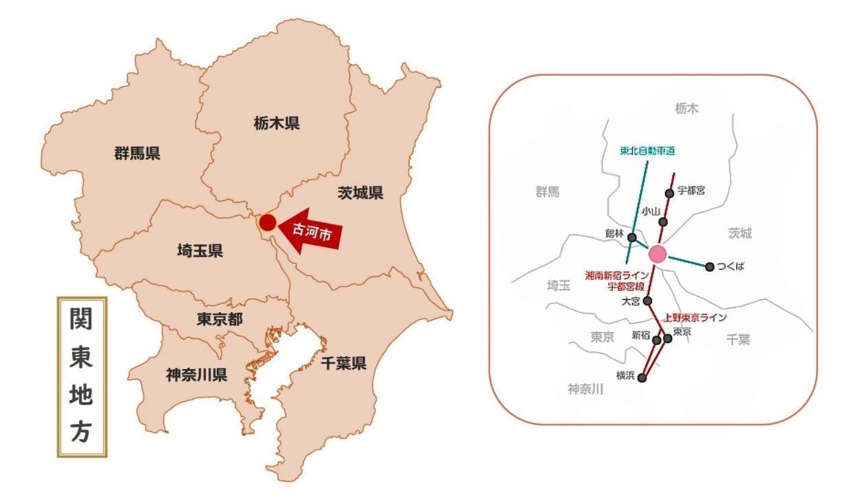 古河市は関東平野のほぼ中央、茨城県の西端にあります。