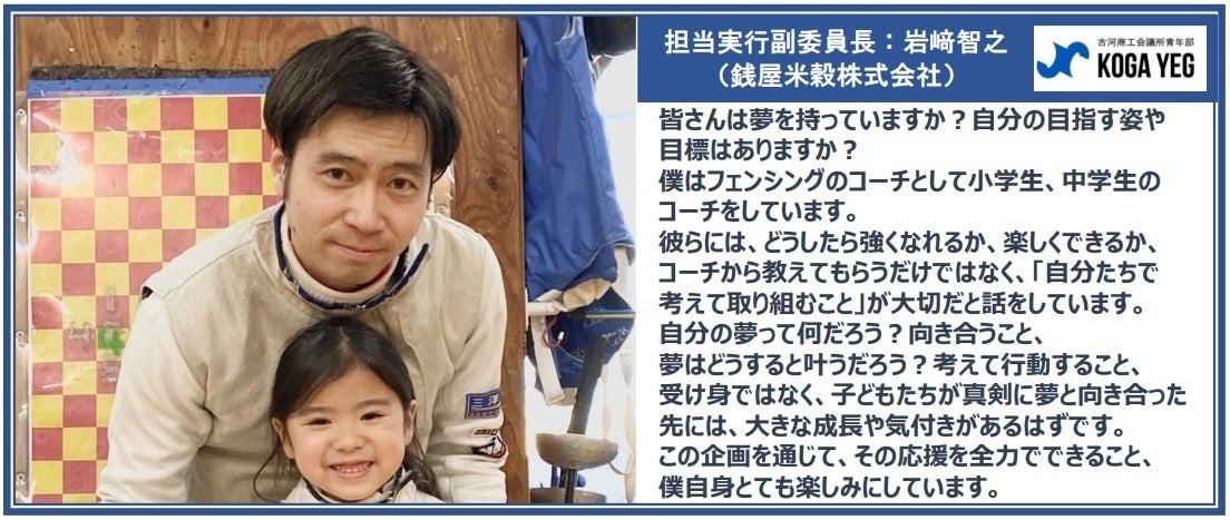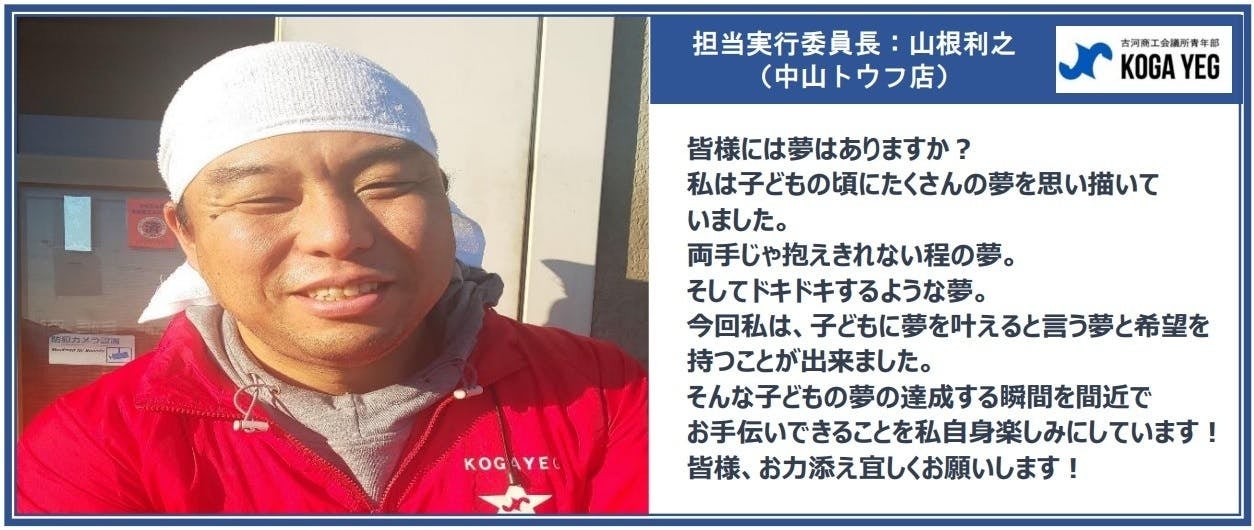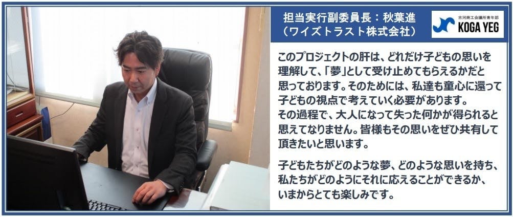 子どもたちに自身の夢を想像してもらい、叶えるために行動し、そして何より夢を叶える達成感を知ってもらいたい。古河YEGが全力で夢の実現をサポートします。