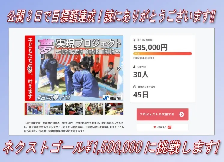 引き続き、古河YEG夢実現プロジェクトを何卒よろしくお願い致します!