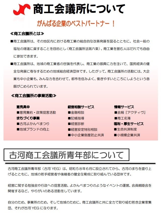 はじめまして、 古河商工会議所青年部(以下古河YEG)です。