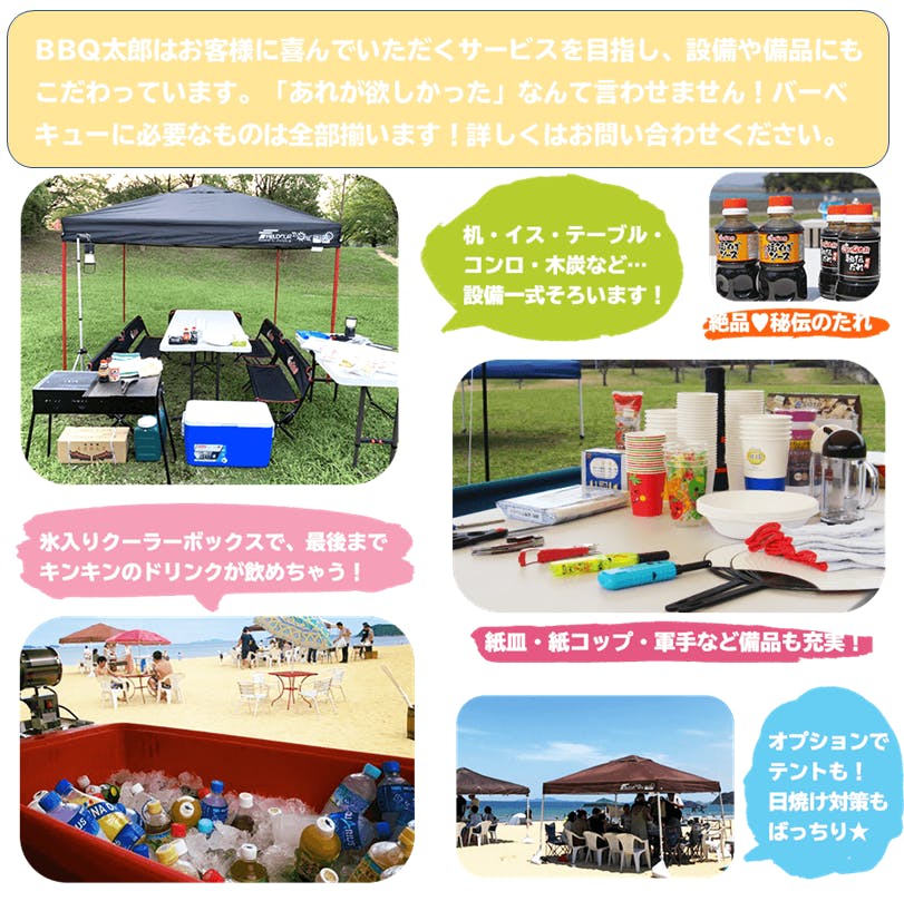 バーベキュー準備から片付けまで全て当店にお任せ下さい