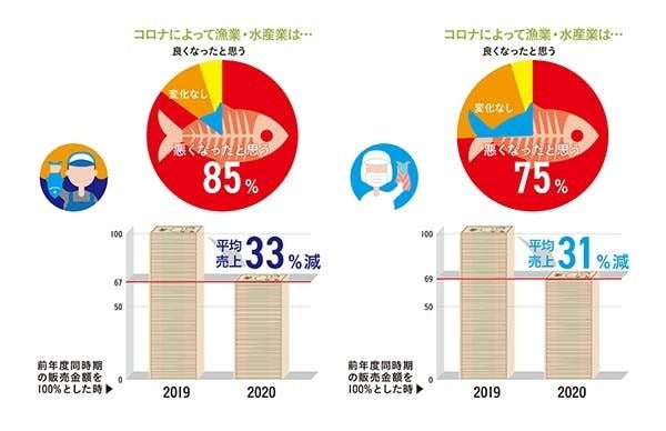 我々をはじめとした水産業界の経済は疲弊しており、例年に比べ売上高は3割以上も減っている状況です。
