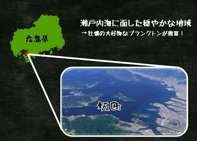 坂町でも古くから牡蠣の養殖が盛んに行われており、瀬戸内海の穏やかな海で育つ牡蠣は、いくつもの川から流れる山の養分により牡蠣のエサであるプランクトンが豊富で、牡蠣の旨みと風味を引き立てます。
