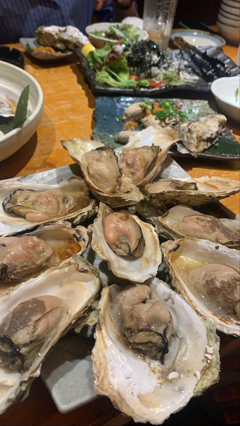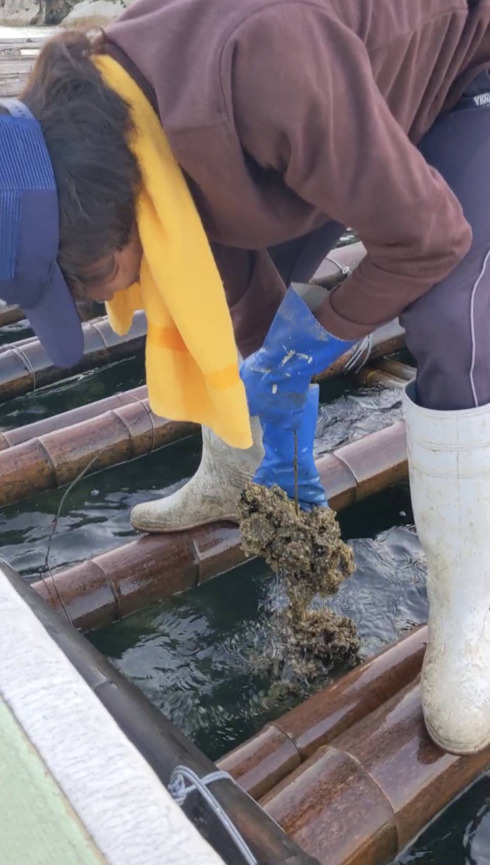 こんにちわ!海幸部です昨日は野村水産に牡蠣の養殖場を船で案内していただきました。夕暮れ時でとても景色が綺麗でした牡蠣の養殖の現場を見せてもらうのは初めてだったので、すごく新鮮で野村さんがいうように牡蠣を育てるためのイカダはとても劣化をしており普段より少しづつ修繕をしながら作業をされているようです。イカダの上を歩かせていただきましたが、なかなかうまく歩くことができずスイスイ歩いてしまう姿がとてもたくましく見えました笑そしてイカダの上から牡蠣をしてきました!まだ少し成長途中という感じで11月に立派な牡蠣を届けられると思いますもしご興味などを持っていただけましたらご支援や拡散のご協力を頂けますと幸いです。何卒、よろしくお願いします。