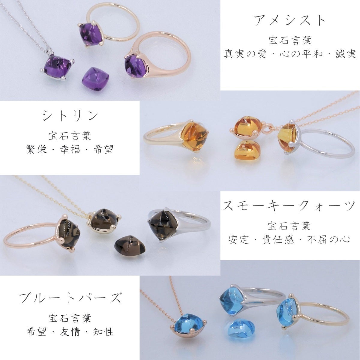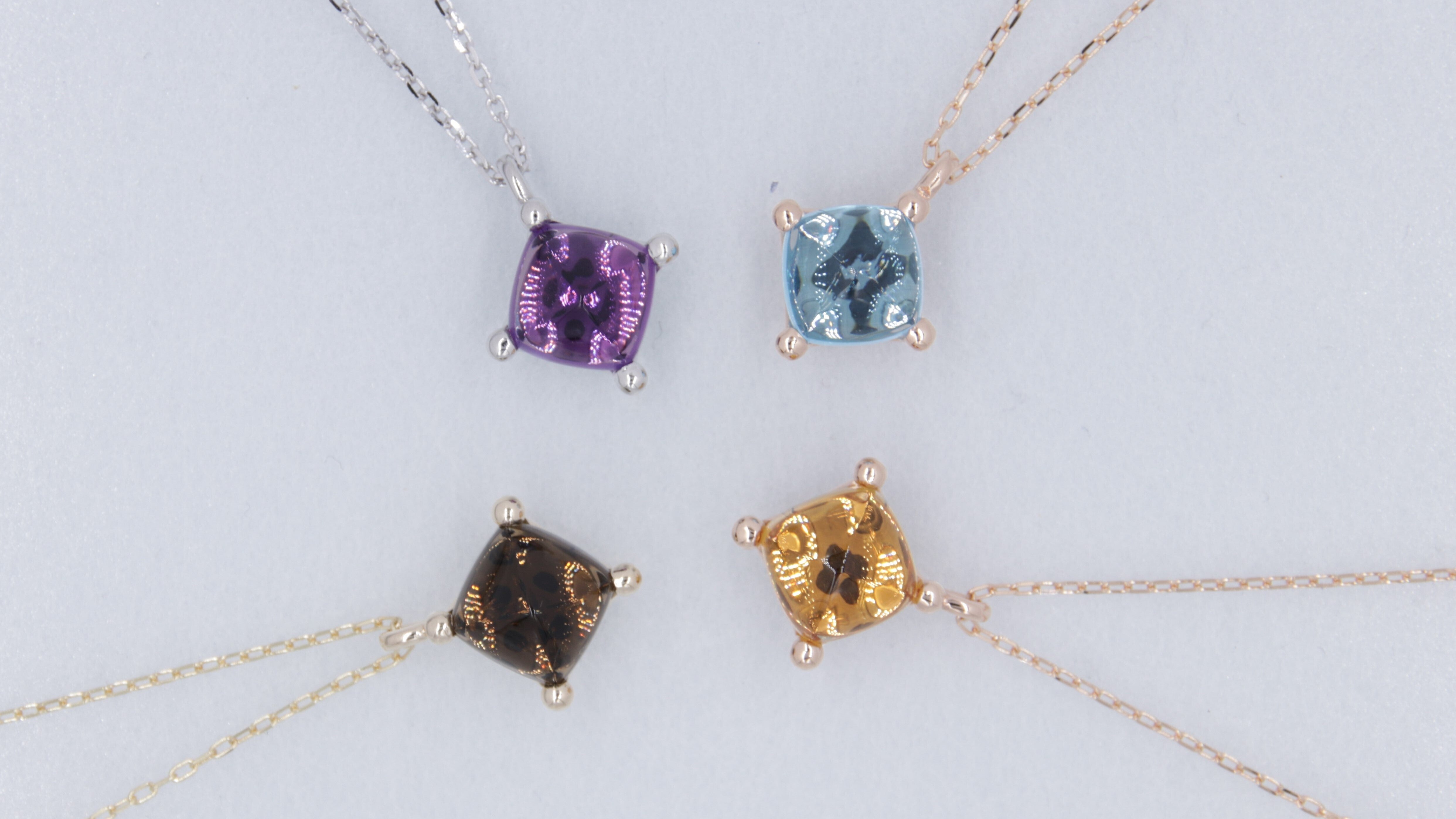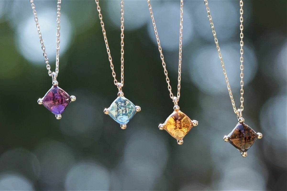 天然石は、古来よりそれぞれにパワーがあるとされ、装飾品やお守りとして使われてきました。そんな天然石は、それぞれ色合いや輝き方も異なり、身につけることで楽しんでいただきたいのはもちろんですが、日常に制限があるこんな時にでも、少しでも前向きな気持ちになっていただきたいなと思いお選びしました。使用する天然石は、アメシスト、ブルートパーズ、シトリン、スモーキークォーツの4種類です。