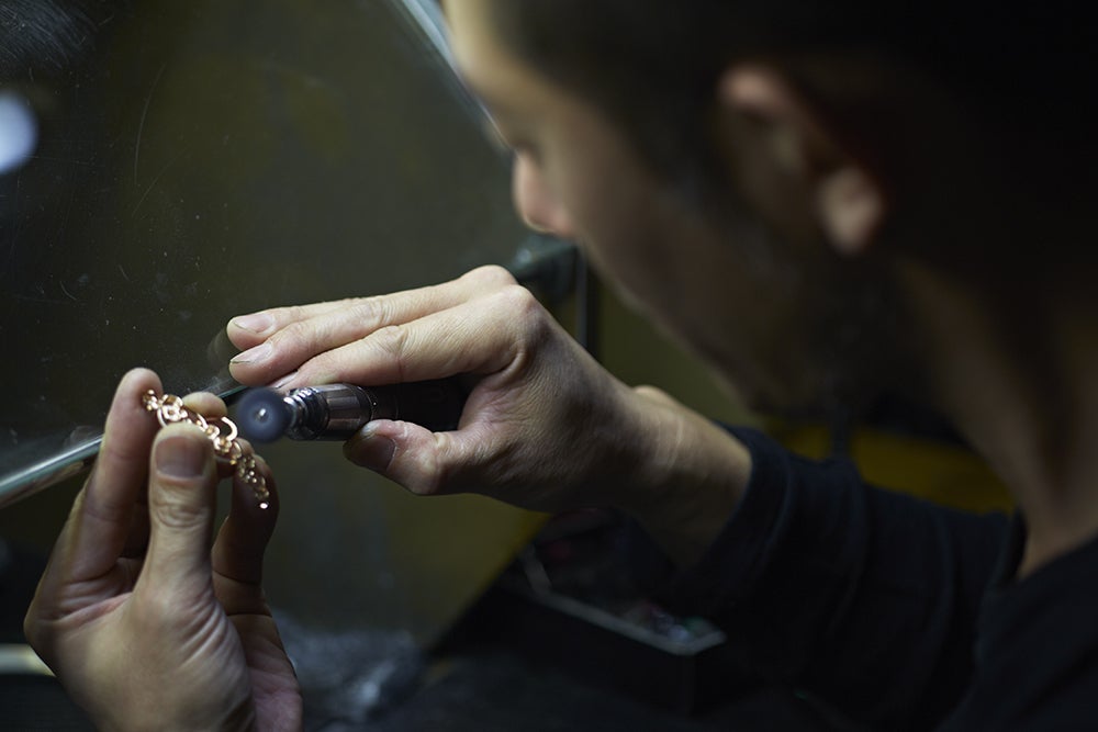 そんな環境なので、山梨には多くのジュエリー職人がいます。そしてその中には、世界のブランドと比べても引けを取らない高い技術を持った一流の職人もいます。彼らは身に着けて頂く女性の事を想い、喜んでいただく顔を想像し、地道な作業をひたむきにこなしていきます。こんなジュエリーで喜んでいただきたい。そのたった1つの目的の為には手間を惜しみません。なぜなら、それこそがジュエリーを手掛ける職人の喜びなのですから。そんな想いから、日々、研鑽を重ね長い年月をかけて技術を磨いてきました。今でこそ、コンピュータや機械が発達し比較的簡単にジュエリーが創れる時代になってきましたが、本当に五感に訴えるジュエリーというのはそういう人の想いが詰まったものなのではないかと私たちは考えています。