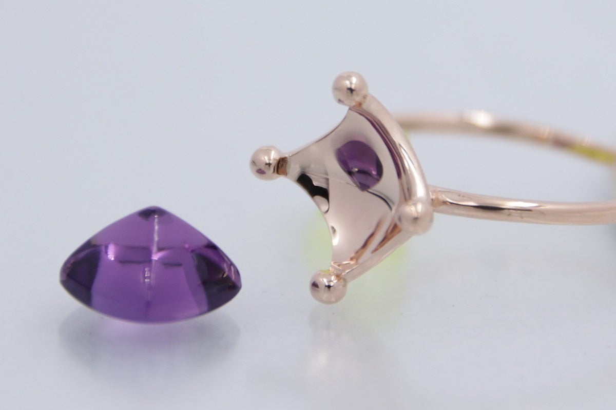 天然石を留めている部分がデザインになっており、可愛らしくセッティングされております。