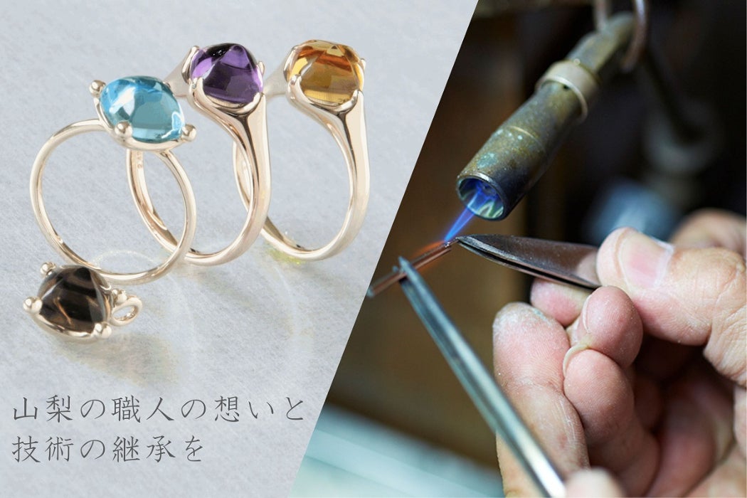 私たちは普段、山梨県でジュエリーの製造を行っています。長年かけて築き上げた技術と、きれいなものでお客様に楽しんでいただきたいという想いの中、もの創りをしてきました。今回もっと多くの方に、そんな職人が手掛けるジュエリーを知ってもらい楽しんでいただきたい、そして、その職人の技術の継承を行っていきたいと想いプロジェクトを立ち上げました。