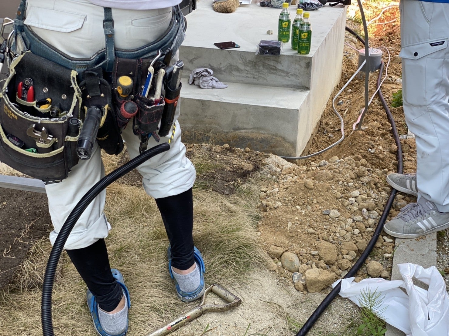 細かい作業は施工会社さん、外の工事は電気屋さんと、大まかに分担されて作業されていました。