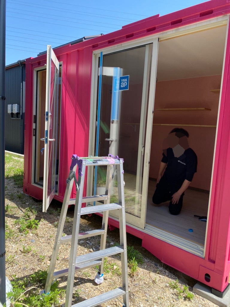 電気屋さん2名、コンテナハウス施工会社さん1名で作業していただきました。