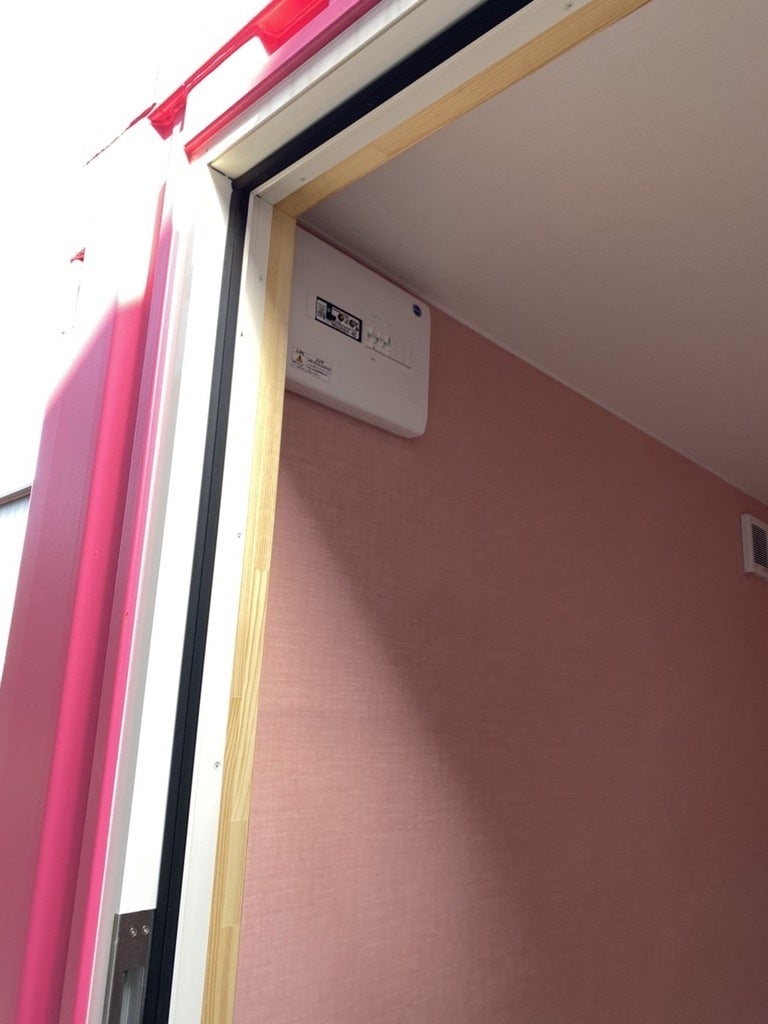 コンテナハウス側の、換気扇とエアコンの穴をチェックします。