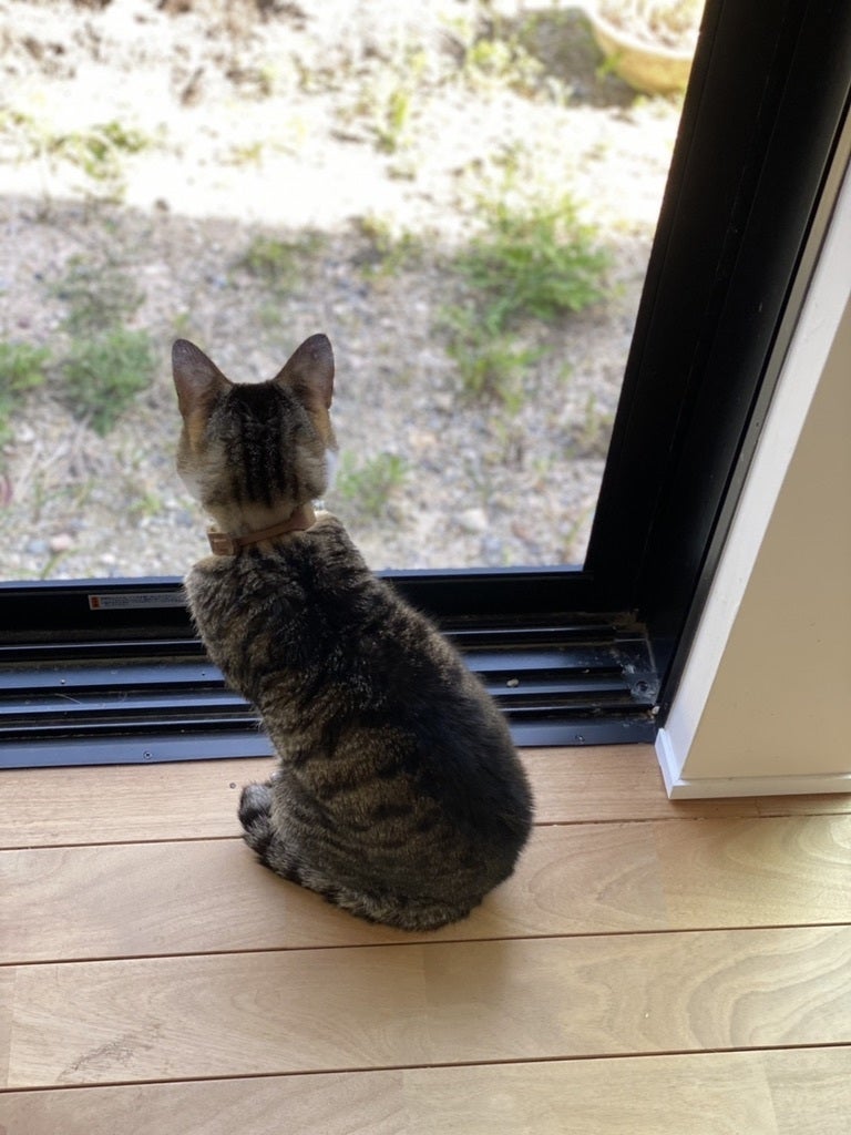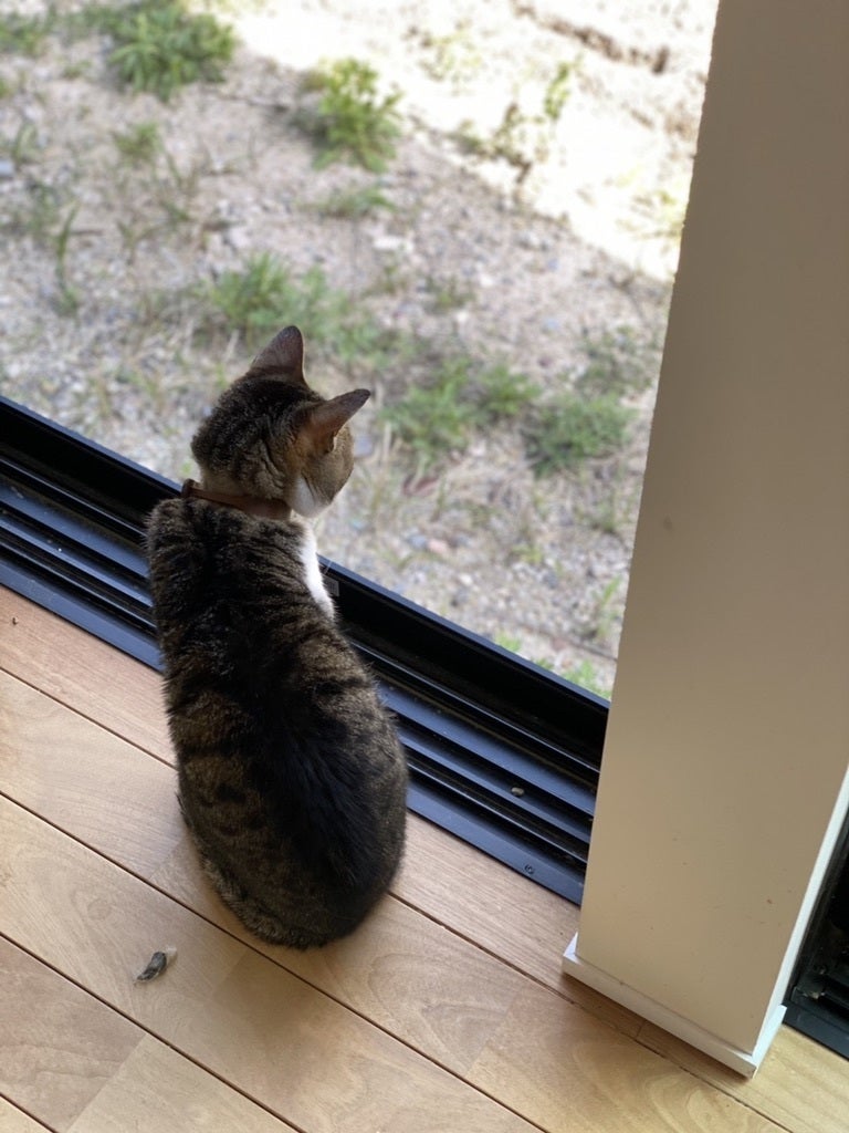 打ち合わせのため母屋に引きこもった私に替わって、わらわらと窓辺から工事の立ち会いをしてくれてた、猫たち。