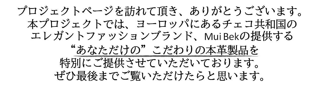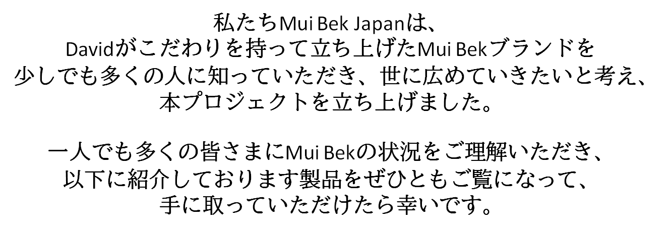 当プロジェクトページをご覧いただきありがとうございます。Mui Bek Japanの鐘田と申します。
