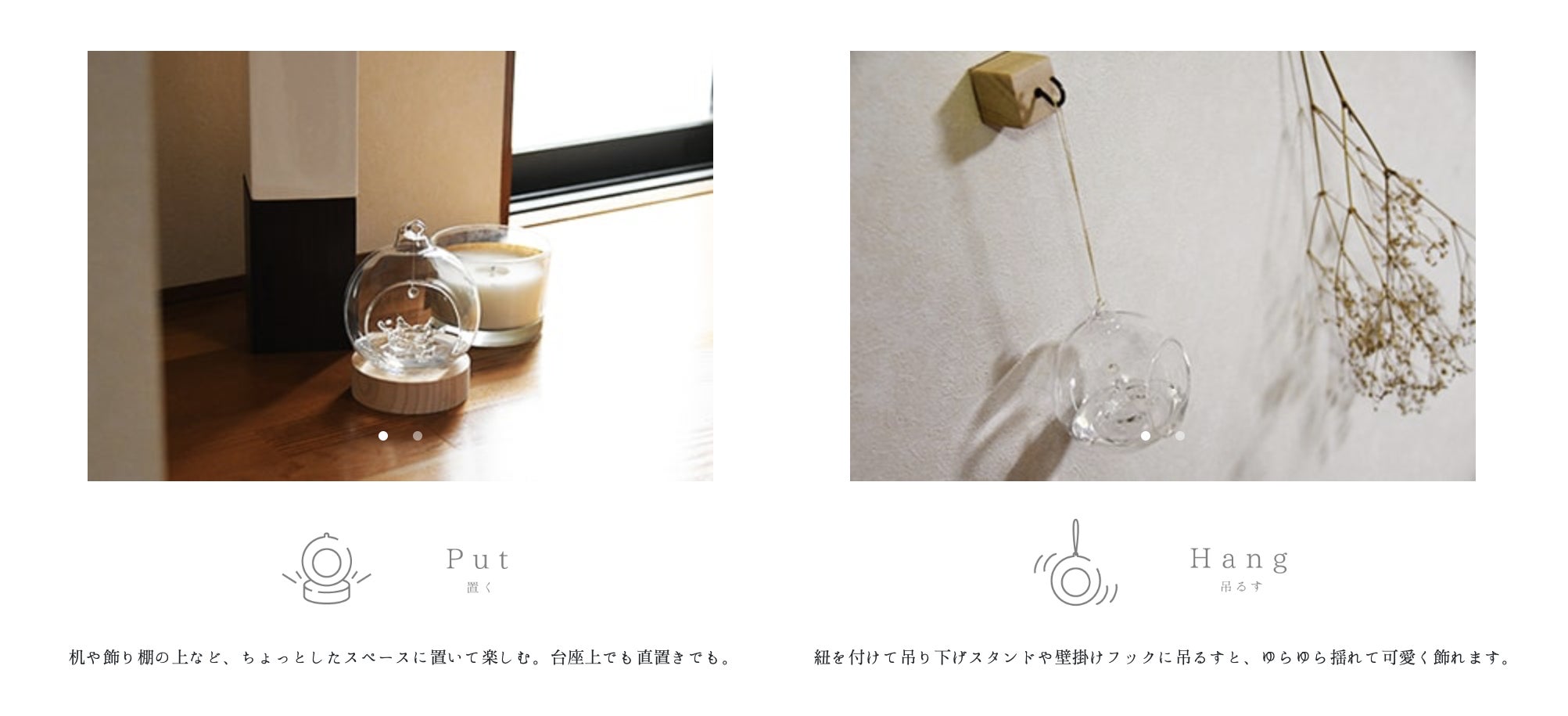 飾り棚やテーブルに乗せたり、壁やスタンドに吊るして飾るなど様々なシーンで楽しむことができます。台座付きなのでその上に乗せて飾ることもできます。