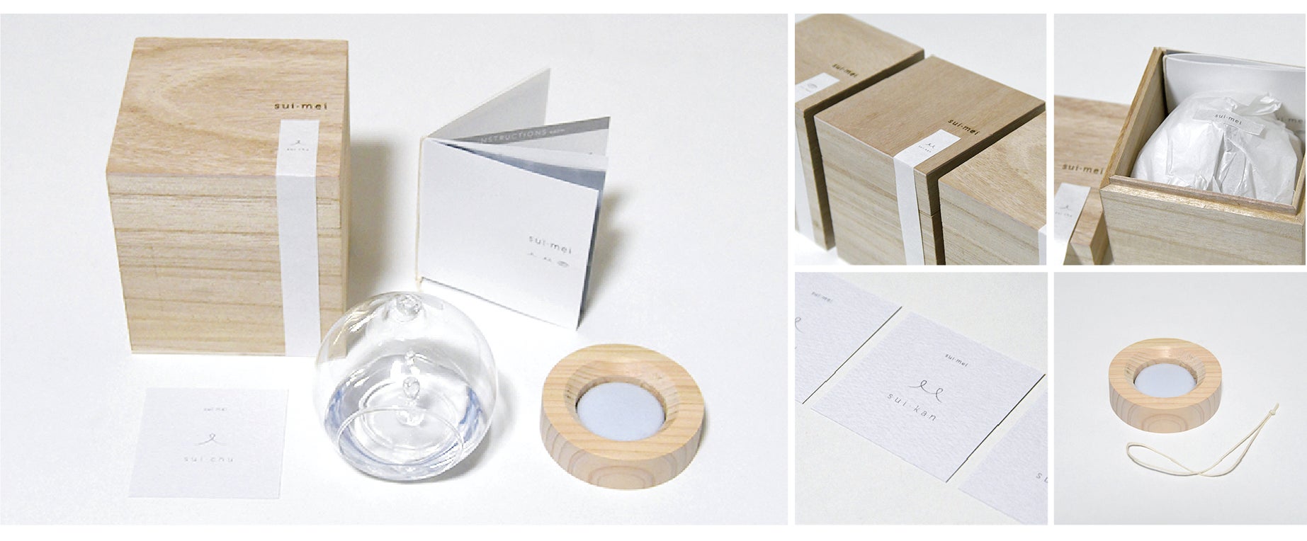 <作品名>「sui・mei」は風景の美しさを表す「山紫水明」から取りました。「水明」は”澄んだ水が光で美しく輝いて見えること”という意味があり、加えて、”水が命あるように表情を変えること”を喩えて水の命、「水命」という造語も当てて、2つの意から英字で「sui・mei」としました。
