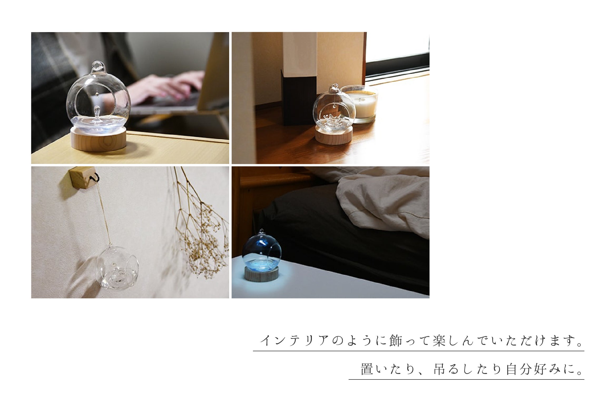 また、台座には水色のライトが付いているので、暗い場所でつけると幻想的な雰囲気を味わえます。