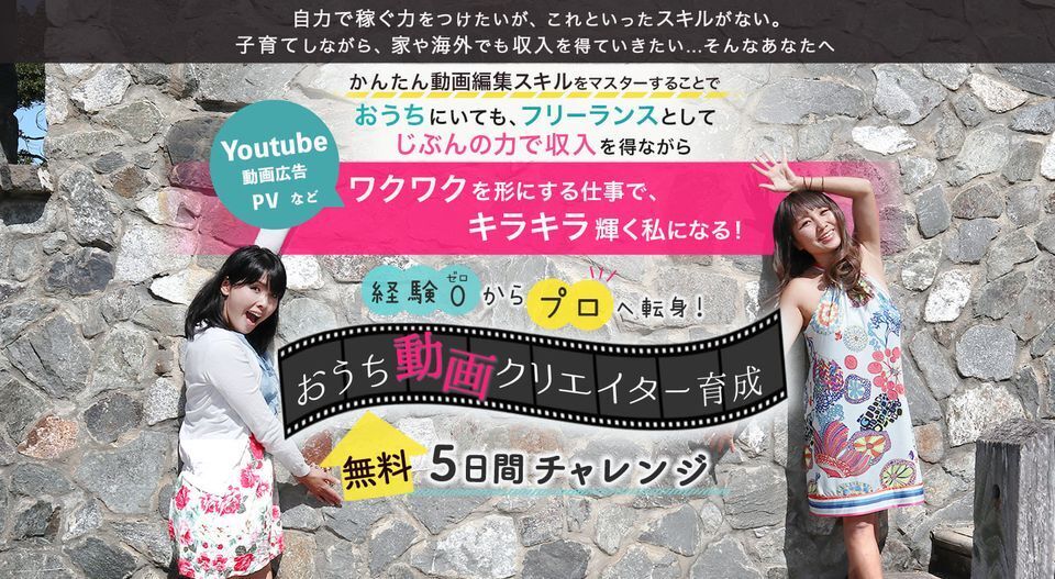 <ご支援ありがとうキャンペーン>ご支援者のみなさまのビジネスやご活動をご紹介します!!おうちで仕事したいママたちに動画編集という手に職を身につけて頂いて、子育てしながらも仕事する働き方を提案するプロモーションが始まります。【子育てママ動画クリエイターで大活躍!!】もっと自由に働きたい、時間や場所に縛られたくない。そんな方に知ってほしい、ふたりの女性がいます!オーストラリア在住元アイドルの永易真美さんと、元テレビ制作会社勤務のウィックスあやみさん。このインパクト大なお二人がスマホ1つで「動画編集の3つのプロテク」をなんと無料で教えてくれています。1つ目は、忙しいママや会社員には欠かせない「動画編集の時短テク」2つ目は、動画をやるなら知っておきたい「YouTube攻略法」3つ目は、プロか素人かが一瞬でバレる「デザインのプロテク」経験ゼロからプロへ転身!「おうち動画クリエイター育成、無料5日間チャレンジ」が始まります。無料で参加する!!↓https://www.purodeza.com/hl皆さま、ぜひぜひ参加されてください。