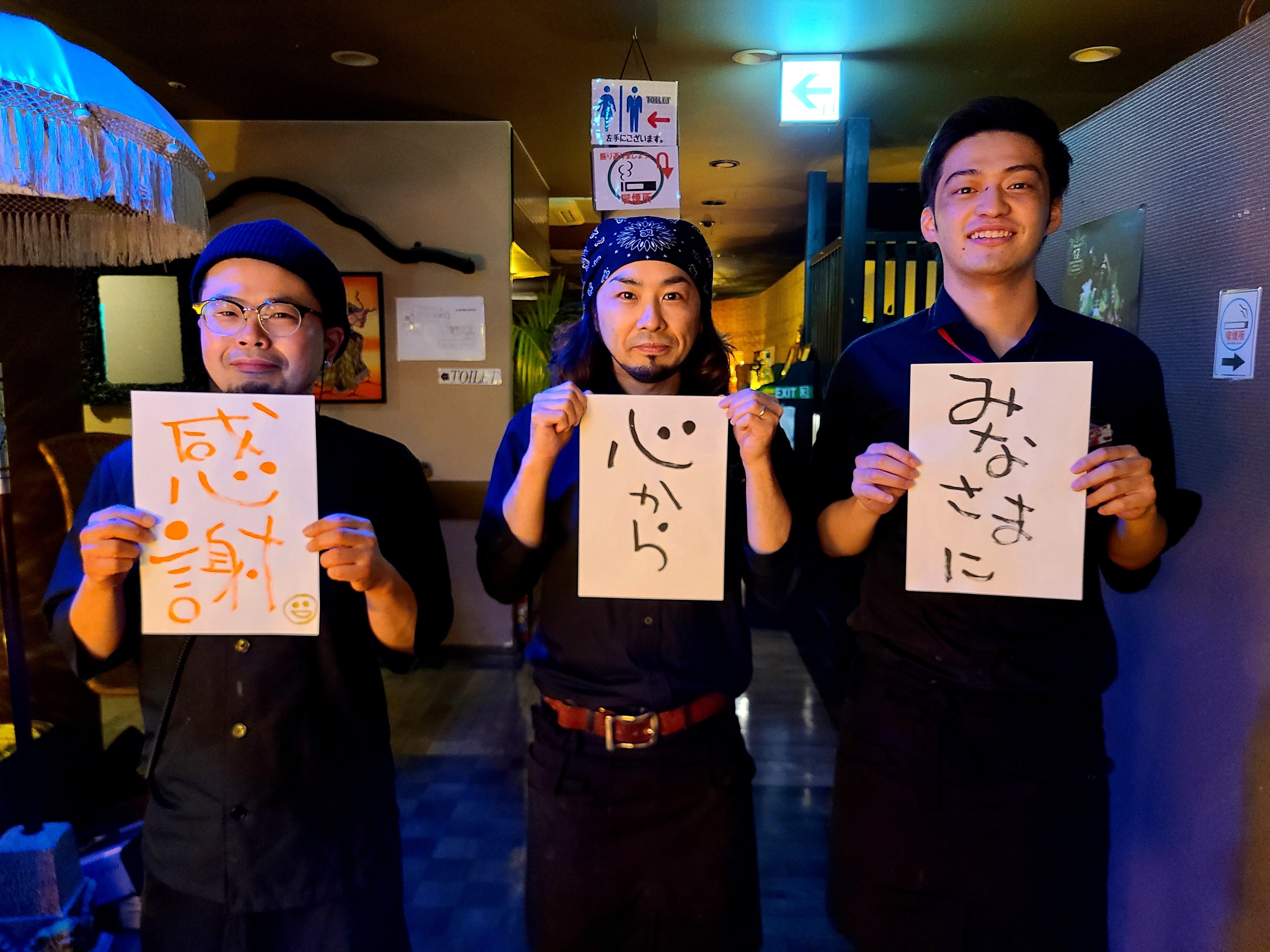 その中で、なんとか私共の行動で少しでも自粛期間も飲食店に目を向けて頂き、少しでも他の飲食店様が営業を続けていく希望になれればと思っています。そしてお店を心配してくれるスタッフや元スタッフ、コロナ禍でもお店を心配して下さり足を運んでくれる、顔を出してくれる常連さんの為にもなんとかこの苦境を乗り切りたいと思います。