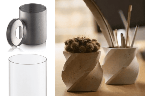 ベースは、芸術的なタッチで耐久性のあるコンクリートでできています。マットストーン仕上げで、それだけでも充分お洒落に使えます。