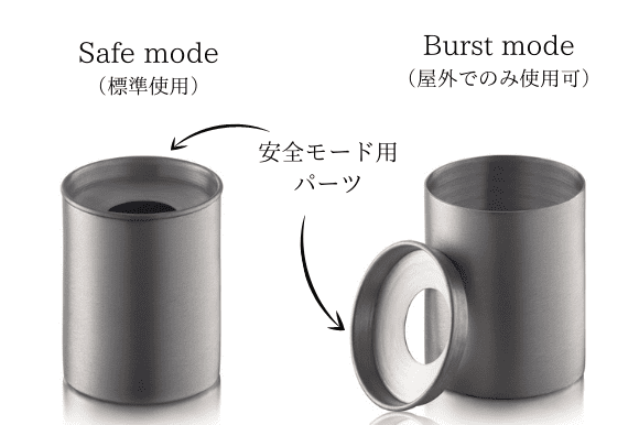 ただし、「バーストモード」でご使用になる場合は、煙が出る可能性がございますので必ず屋外でご使用ください。