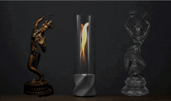 なぜこんない美しいのか。しかしガラス菅がないとMENKA(メンカ)は美しく舞うことができません。 ガラス管を被せることにより、炎は安全な空間に閉じ込められ、美しく舞い始めます。