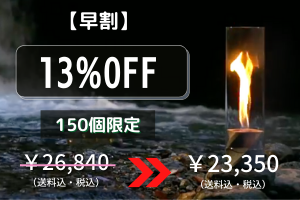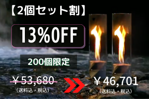ろうそくの小さい火やLEDライトとは一味違う本物の『炎』を眺めることで、充実の時間をお過ごしください。