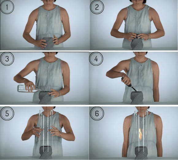 燃料はバイオエタノールで環境に優しく、わずか6ステップで2時間ほど炎が燃え上がります。