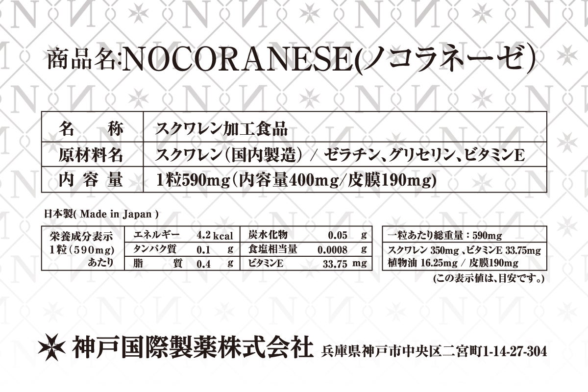 ◆ノコラネーゼ(高品質・高純度スクワレン、ビタミンE)
