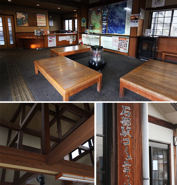 古い歴史を感じさせる風情の外観・内観と、湖南のハイキングコースの案内やレンタサイクルのサービス提供など、石部駅を訪れる人をもてなしてきました。