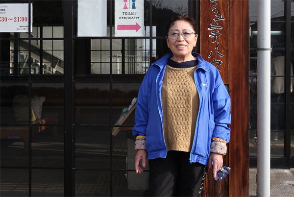 ▲毎朝の顔になっていた、近藤美代さん。甲賀市甲南町出身。電車を利用しない人でも彼女との会話を楽しみにハウスを訪れる。