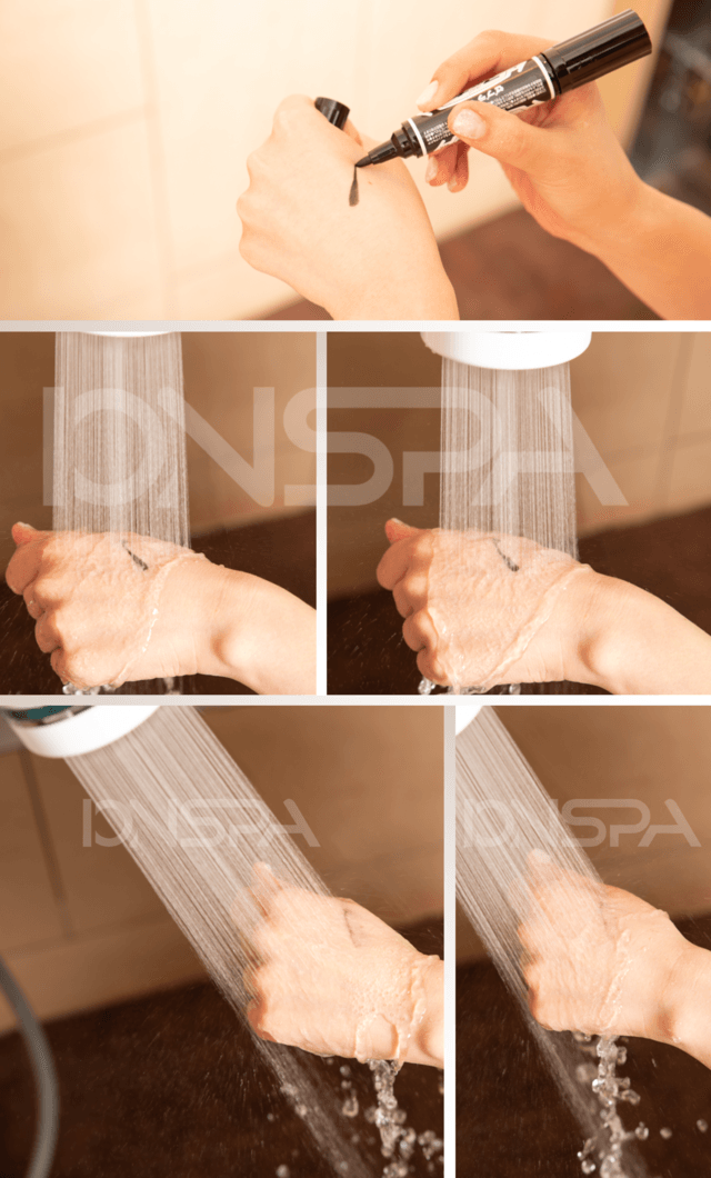 ※イオンスパのシャワーヘッドは従来の一般的なシャワーヘッドより重いです。その理由は、防弾ガラスや防弾プラスティックの製造に使われる耐久性に優れたポリカーボネート素材を2重射出成形し、更に中には8重の様々なフィルターを内蔵しているからです。