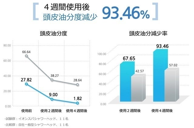 イオンスパシャワーヘッドは頭皮の油分と角質の除去と保湿、また肌の保湿に役立つことが分かりました。
