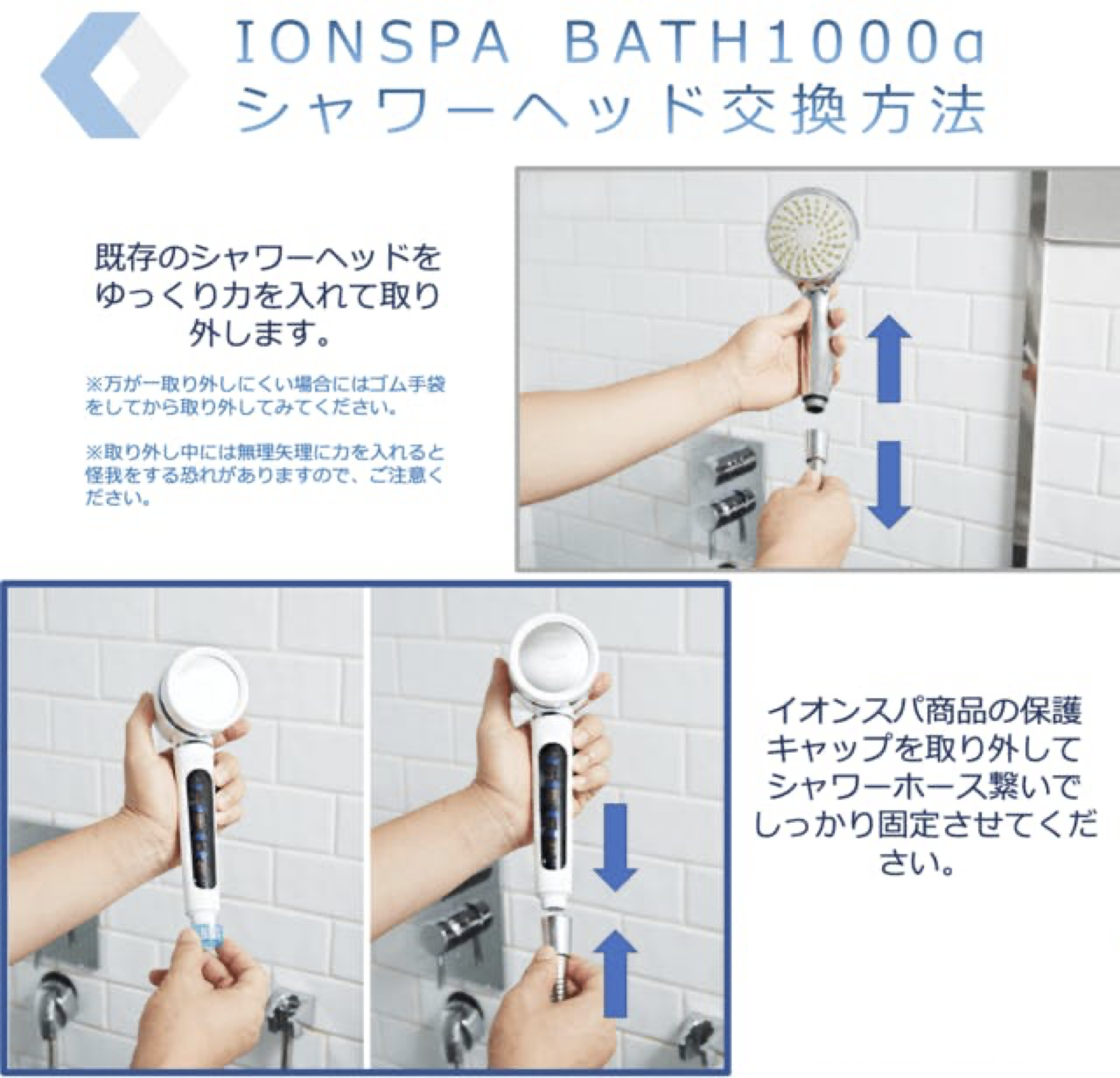 イオンスパのプレミアムシャワーヘッドの使用によって