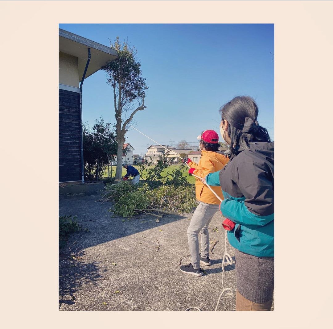 大きくなった根っこが水道管を巻き込んでいるとのことで抜かなくちゃなの。。。スーパーマンsanのお力もお借りして、みんなで切ったよ。。。切り株は、畑の椅子でシッカリ活用させてもらうからね!!!