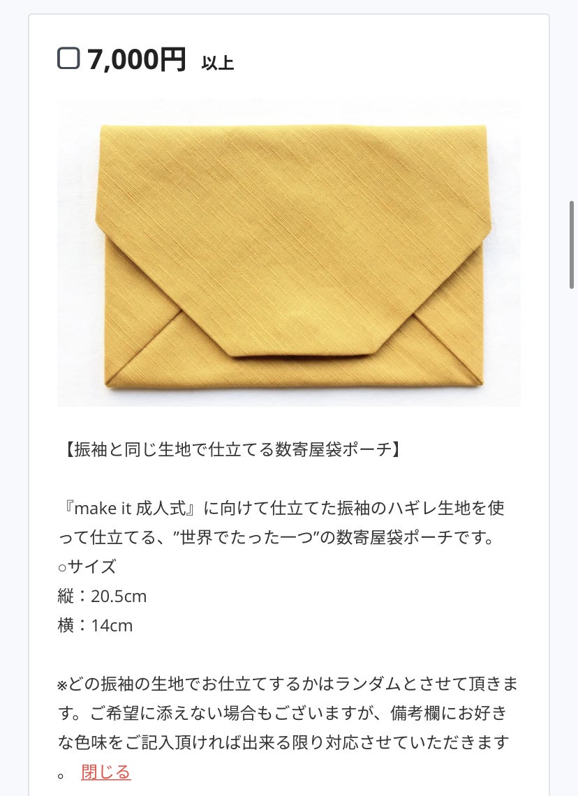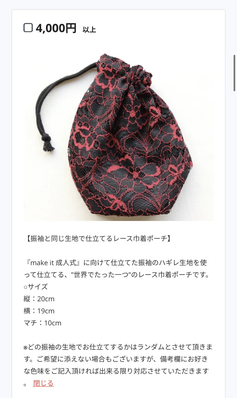 新成人へレンタルする生地で仕立てる『巾着』と『数寄屋袋』。