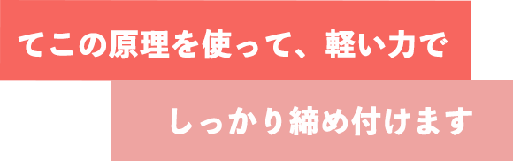 サポートしてくれる範囲が広く強力に腰を支えてくれるのが「簡単装着腰椎サポートベルト」の特徴ですがてこの原理を使うことで、軽い力で締め付けることができます。