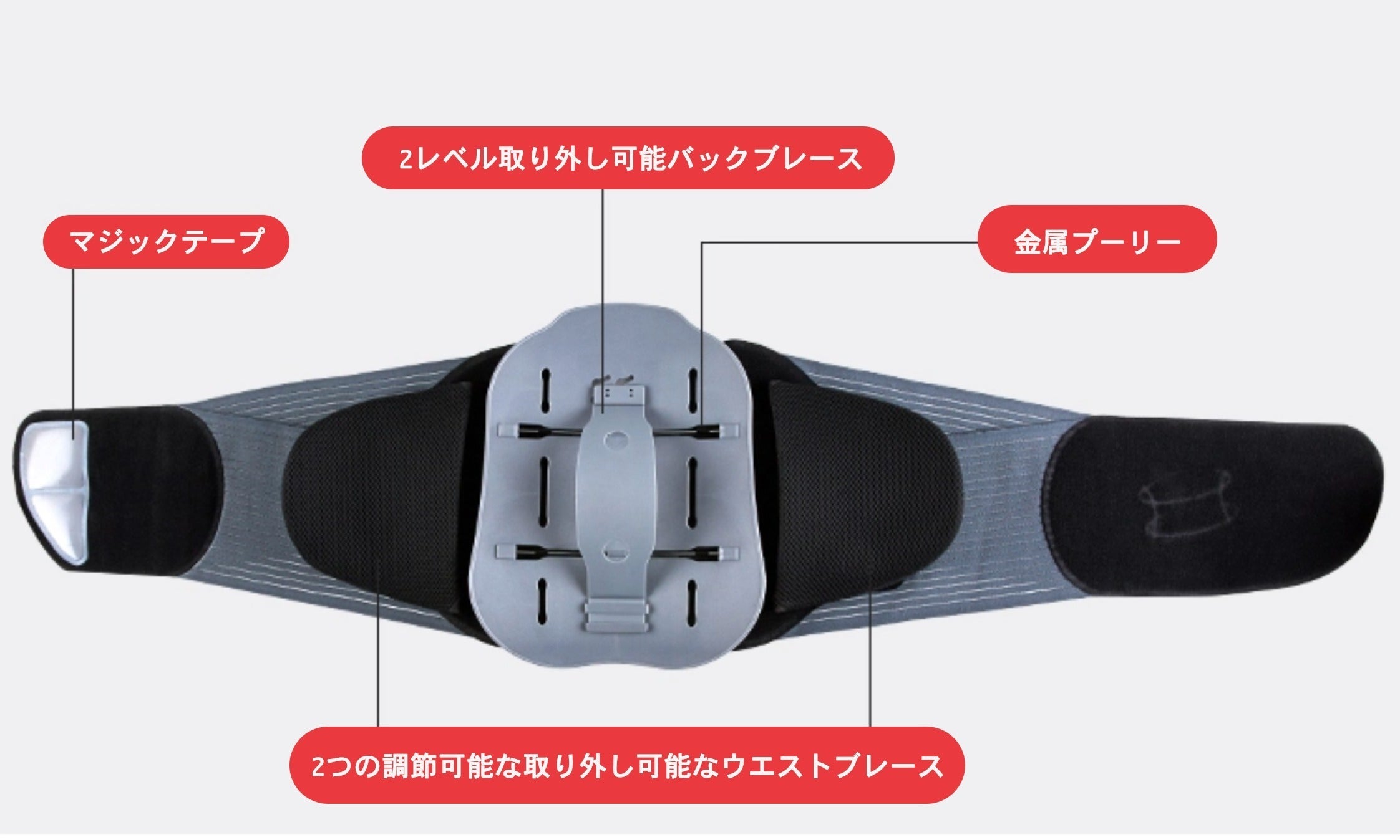 - 1、腰椎のサポートプレートは取り外し可能なので、自由にサポート力を変えられます。