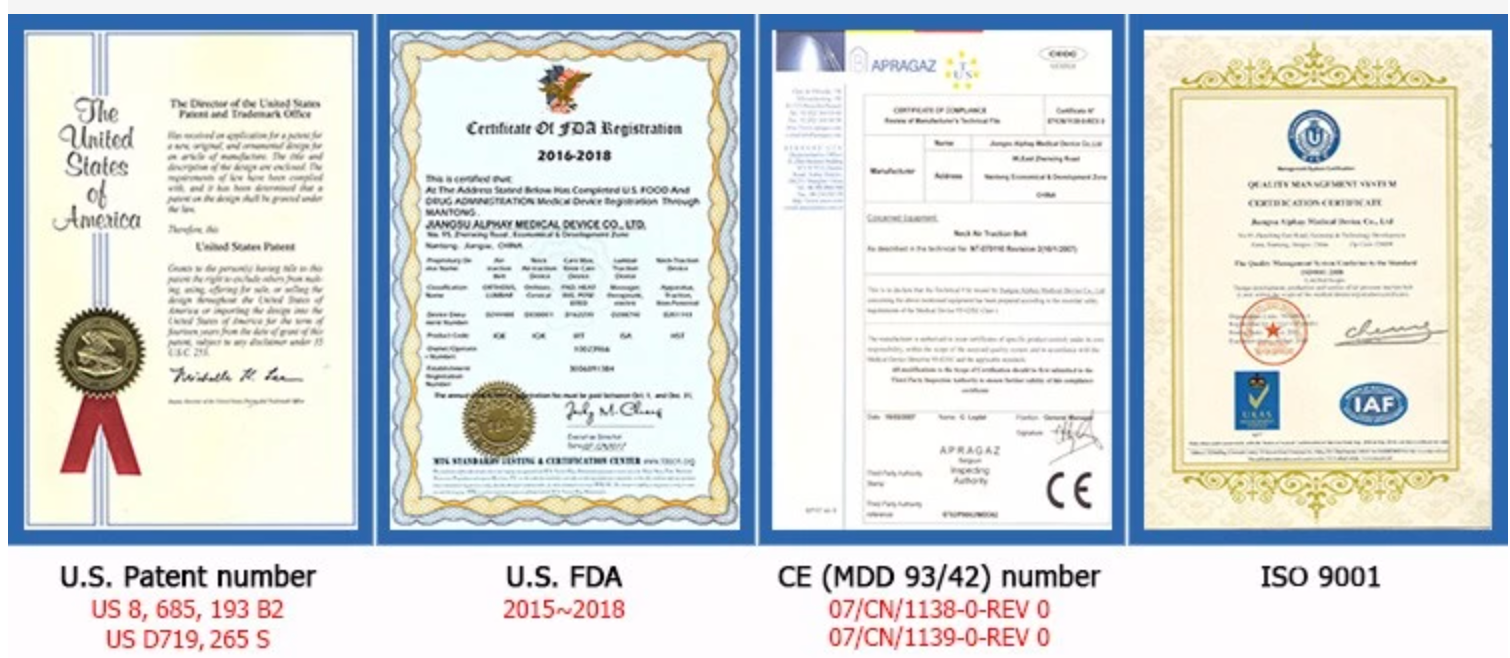 「簡単装着腰椎サポートベルト」はただのサポートベルトではありません。きっちりとアメリカの特許も取得していますしFDA(アメリカ食品医薬品局)の承認も得ています。