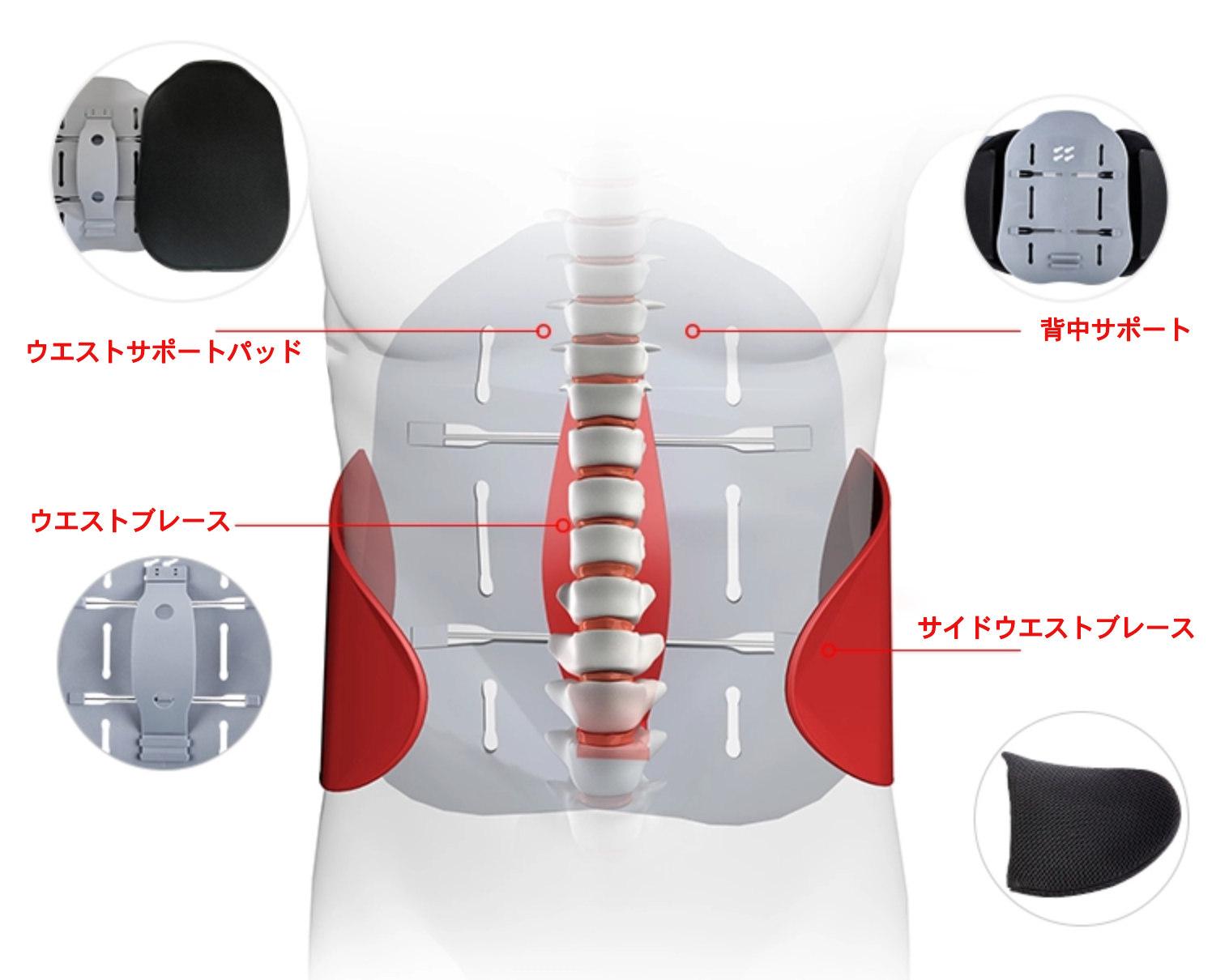 付属品:マジックウエストサポート、バックサポートプレート、バックサポートプレートカバー(全て取り外し可能な製品のパーツ)