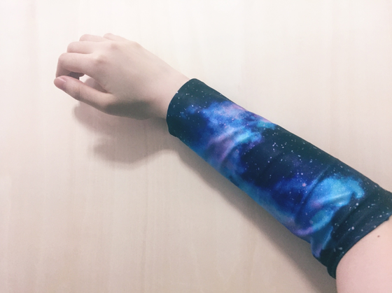 宇宙柄、モノクロ、ボーダーの3種類からアームカバープレゼント致します。