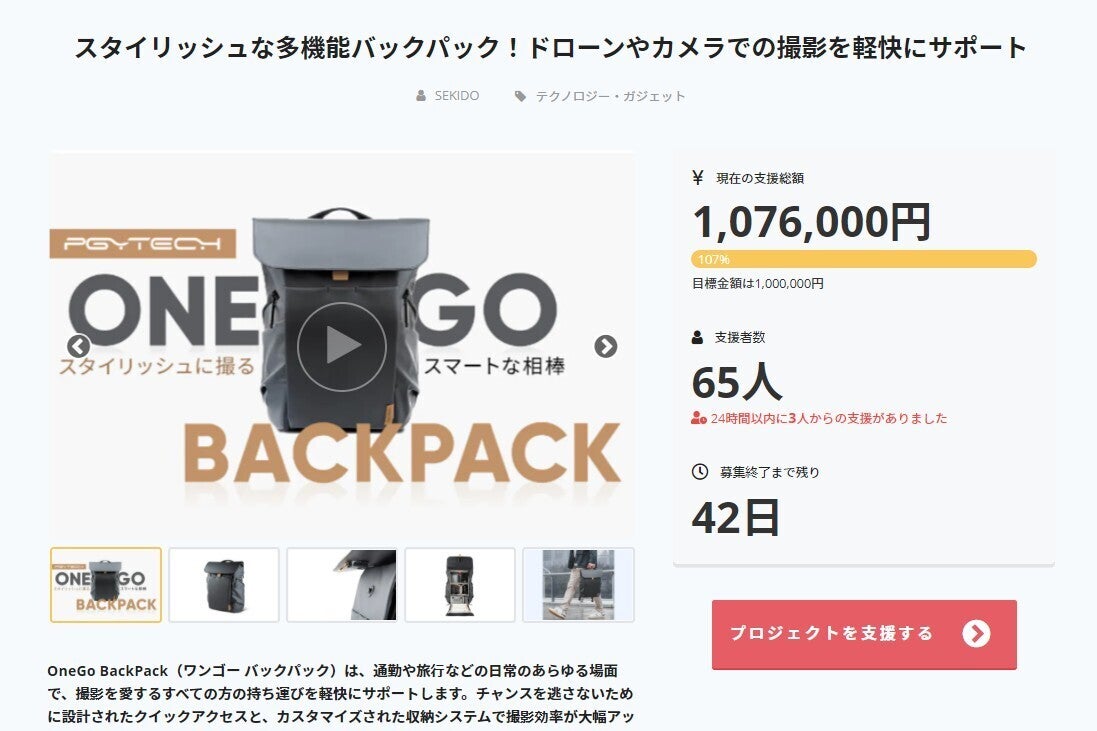 プロジェクトの目標は達成しましたが、撮影を愛する全ての方の毎日が楽しくなるカメラバッグ「OneGo BackPack」をより多くのユーザーにお使い頂くため、引き続き製品の魅力をお伝えしてまいります。