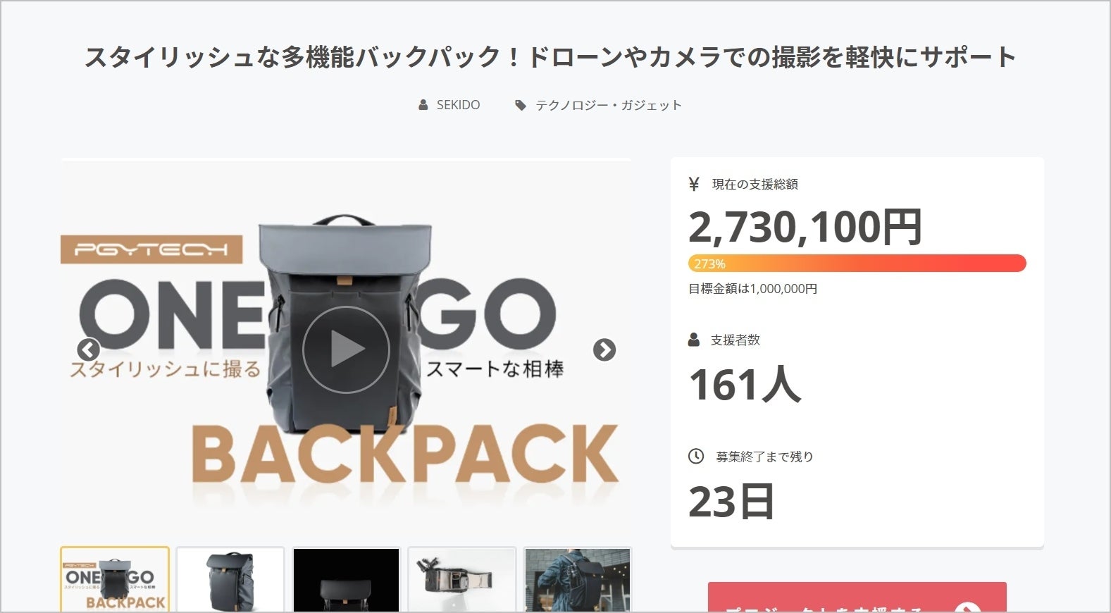 すでにご支援頂き到着をお待ちの方や、OneGo BackPack の魅力に共感頂いた方は、ぜひその魅力をSNSなどでご紹介頂ければ幸いです。