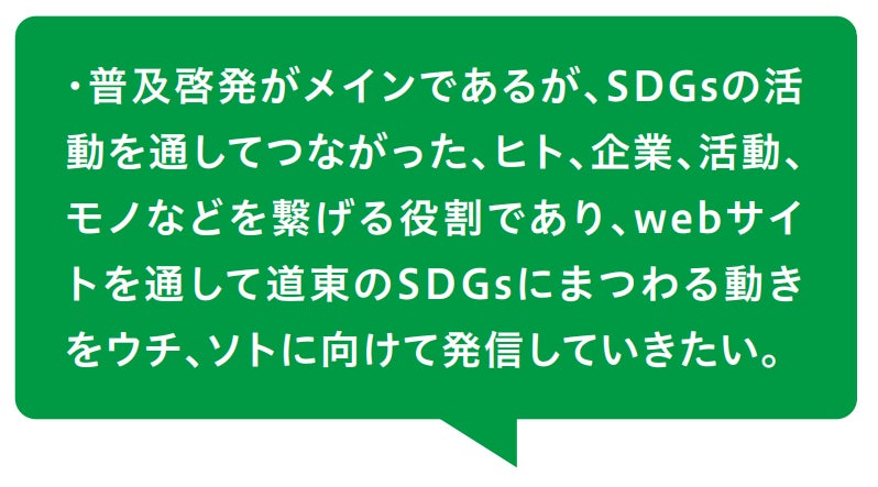 こうしたを声を実現させるため、WEBサイトを制作し道東のSDGsの普及啓発や実践を呼びかけていきたいと思っております。