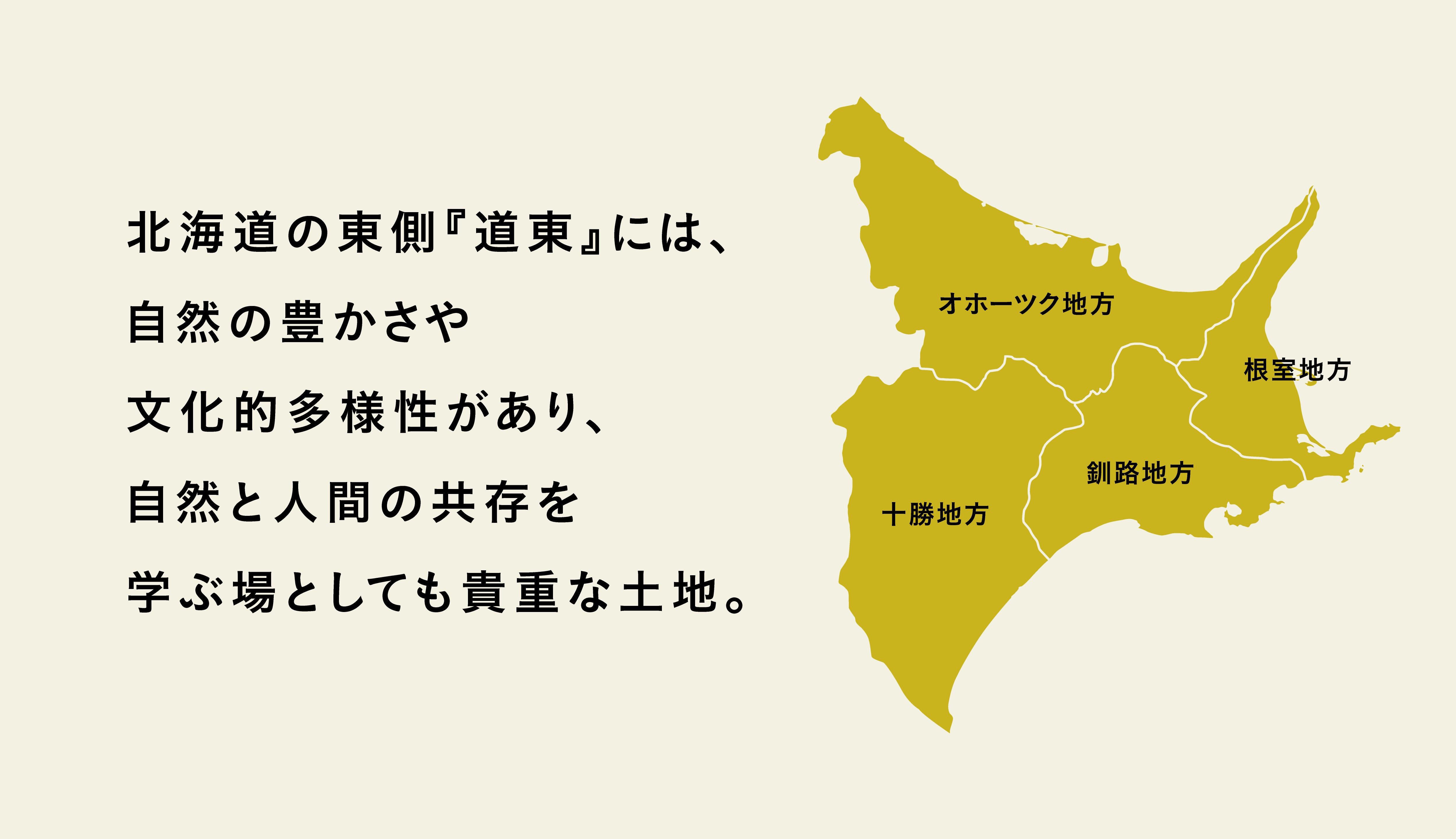私たちが暮らす道東、とくに釧路・根室地域には、知床や阿寒などの自然の豊かさやアイヌ民族などの文化的多様性があり、自然と人間の共存を学ぶ場としても貴重な土地で、まだまだ知られていない魅力にあふれています。