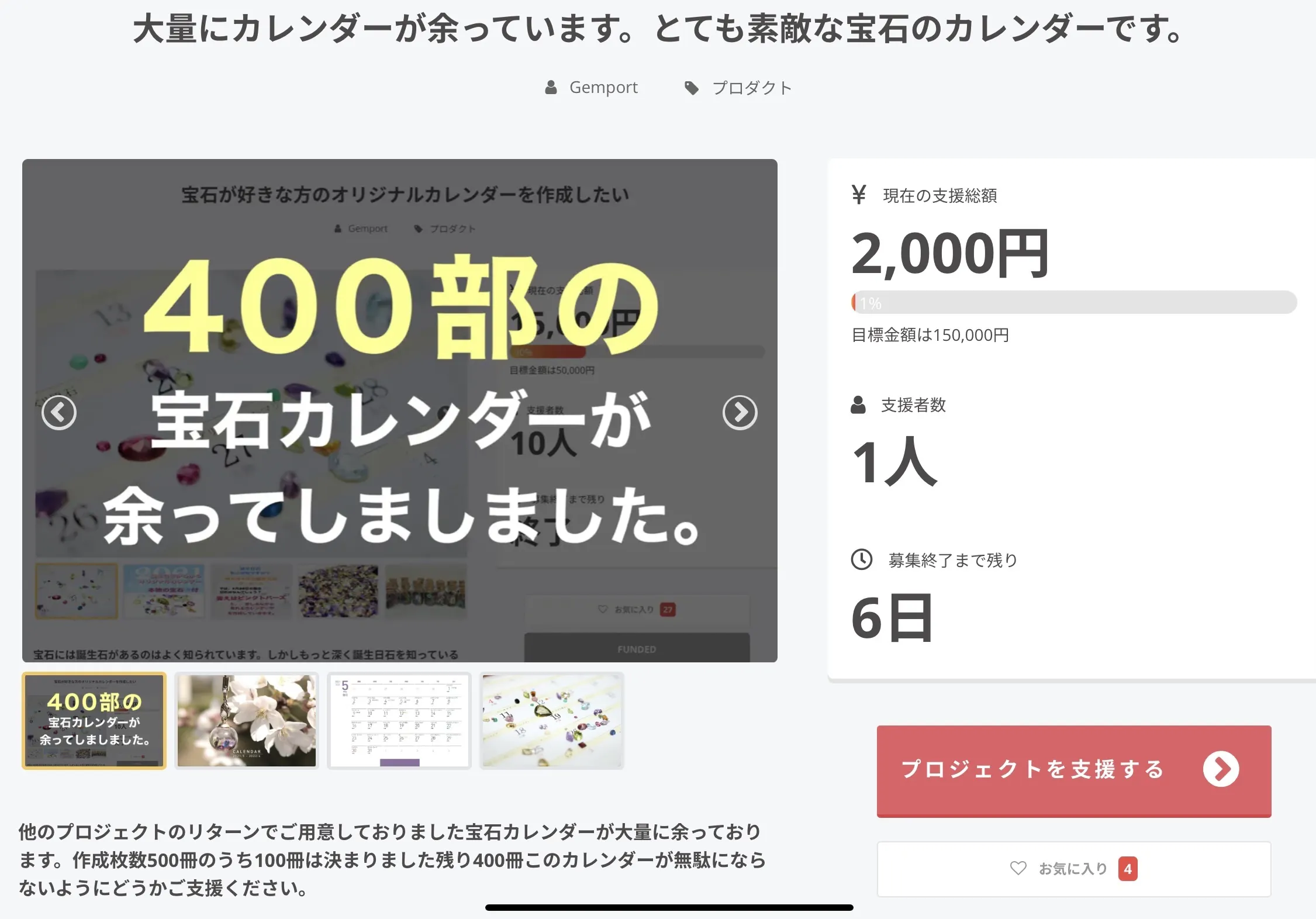 昨日、お一人の方にご支援いただけました。