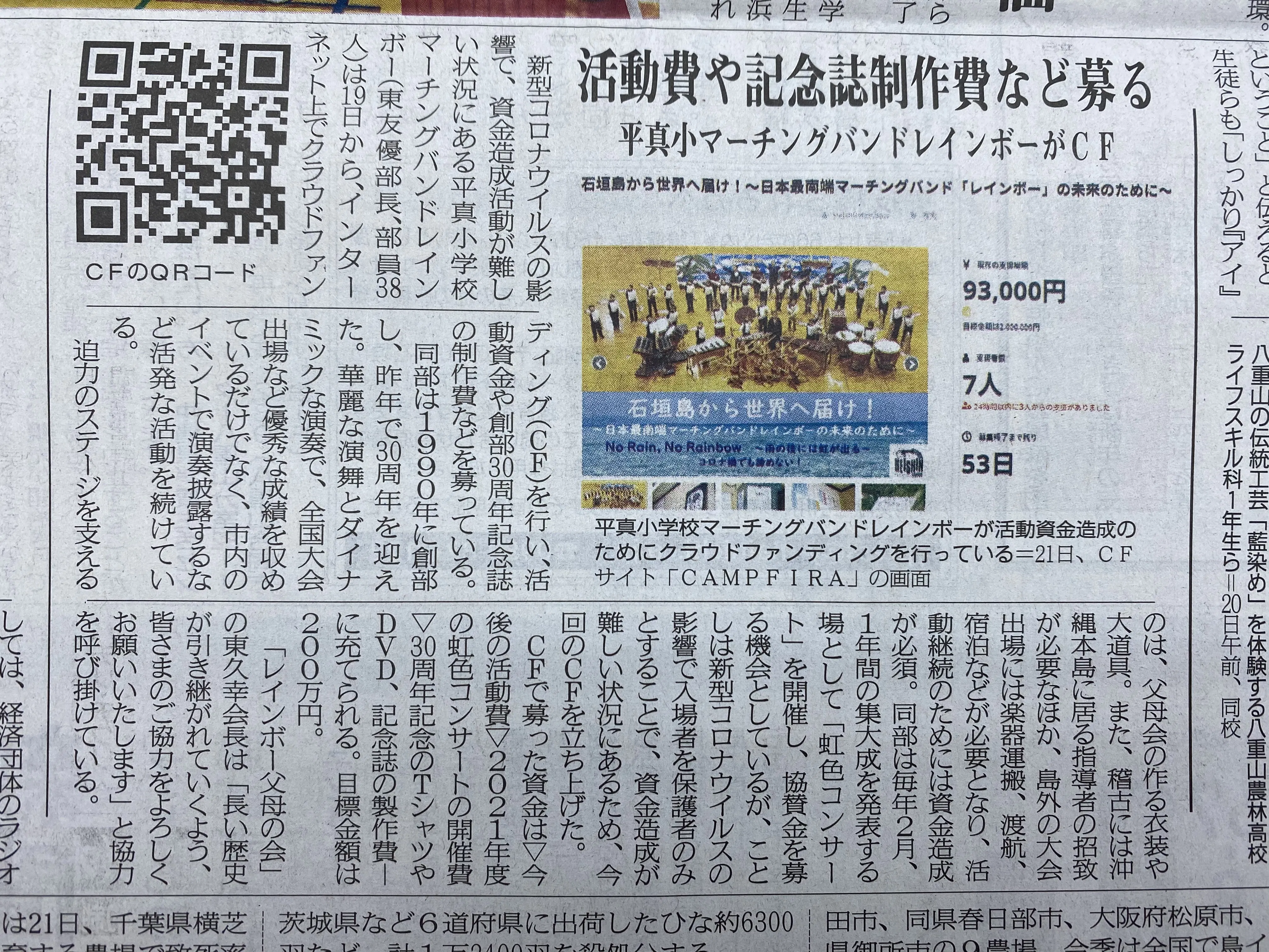 さて、本プロジェクトについて、本日(R3.1.22)付けの八重山毎日新聞8面にて取り上げて頂きました。