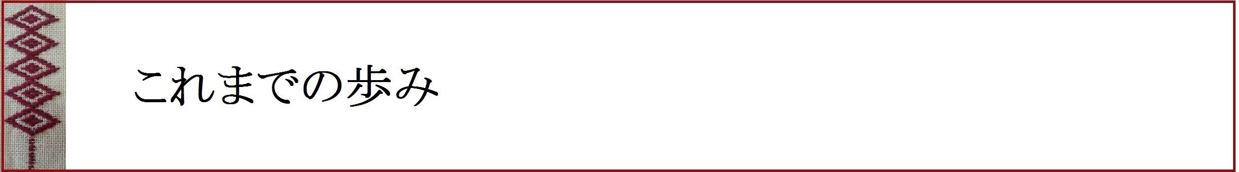 2008年 「南部菱刺し」に出会い、その魅力にとりつかれて製作を始める。また、「南部菱刺し」の歴史や背景、現在の状況にも関心を持ち、青森他に足を運び、多くの製作者との関わりを持ち始める。
