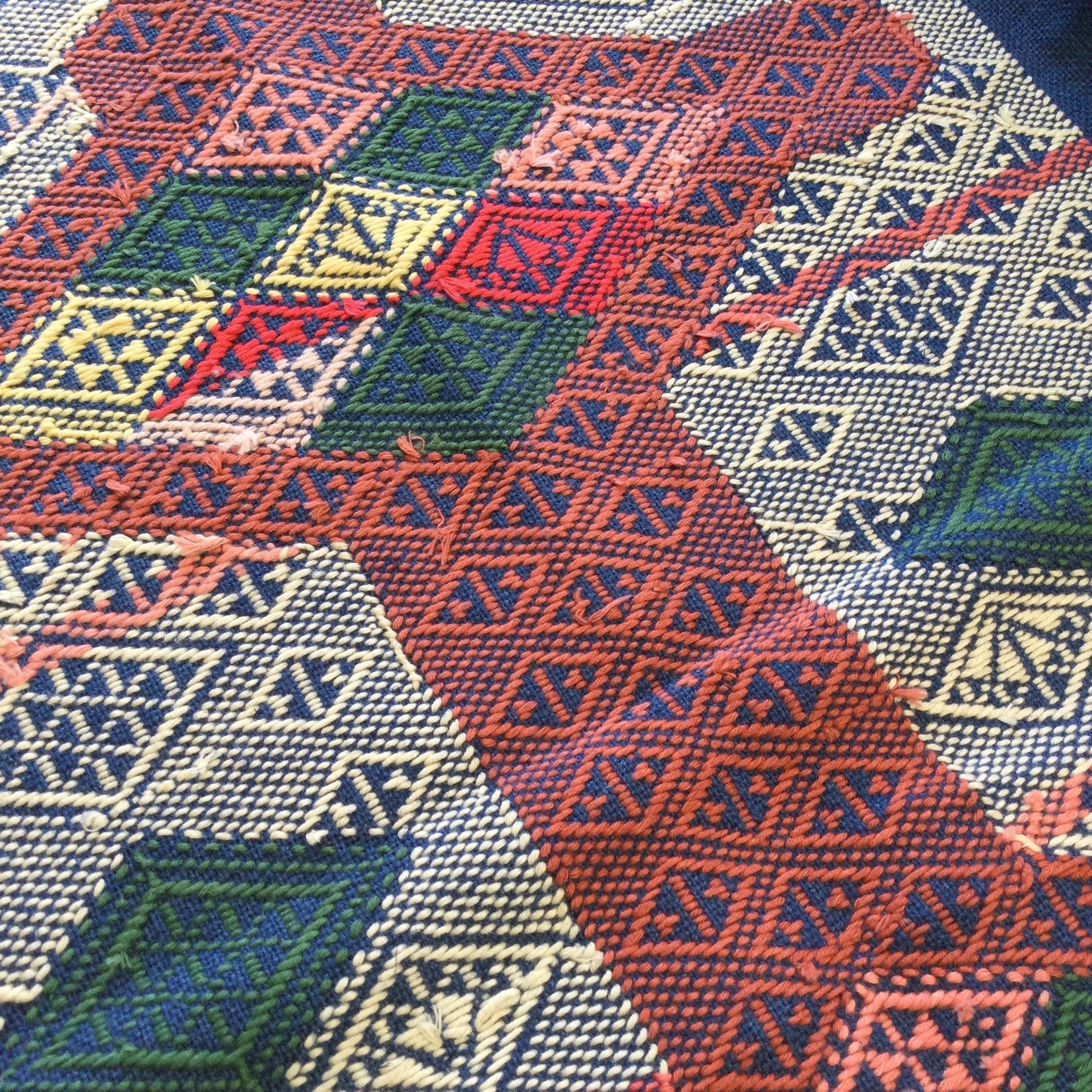 もちろん、裏側には糸の結び目もありますので、作品になる時には裏布を貼り、目にすることはなくなりますが、布全体に糸が渡っているのを確認できます。これが菱刺しの丈夫でありがなら、しなやかである所以です。