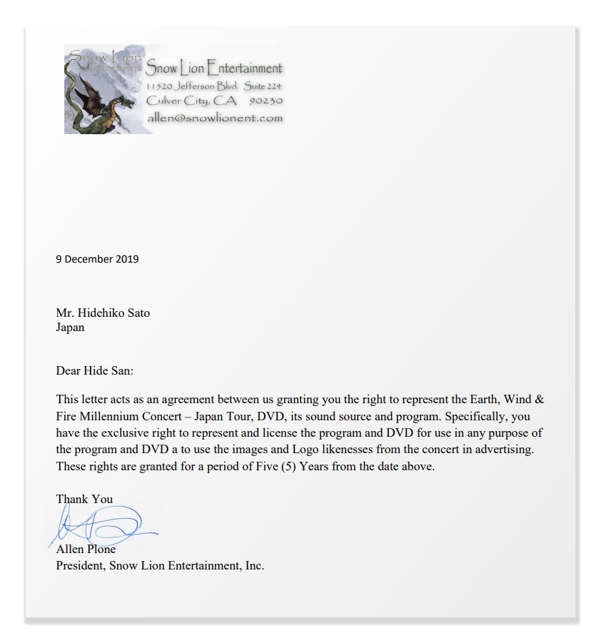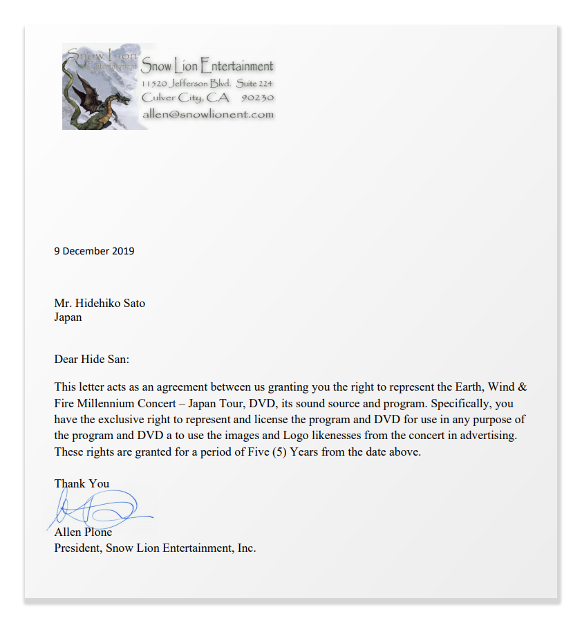 先項目でも書かせていただきましたが、アース・ウィンド・アンド・ファイアーの『Earth, Wind & Fire Millennium Concert Japan '94』制作監督のAllen Plone氏と知り合い、このライブ映像及び音源の日本での使用権を譲り受けました。