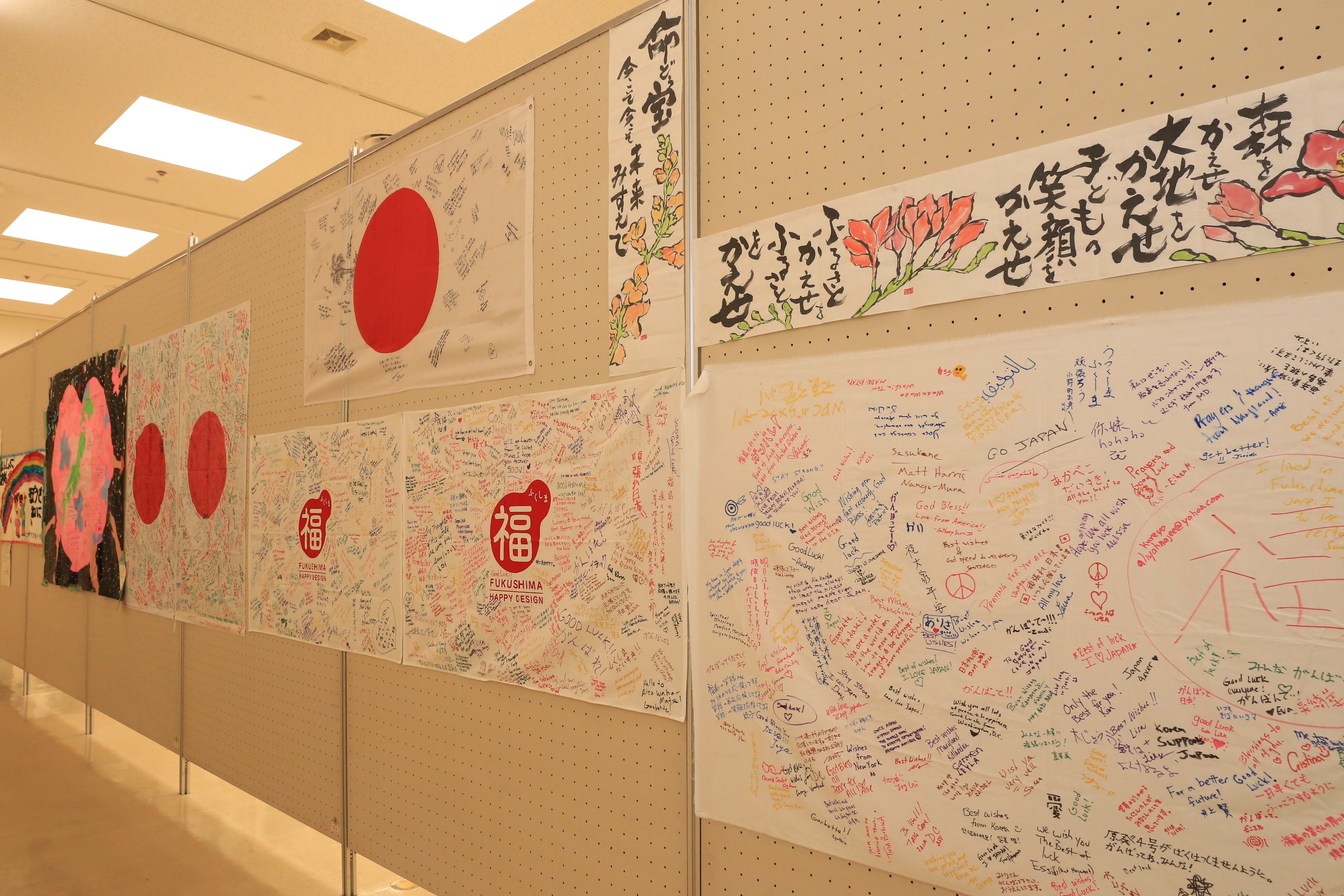 励ましのメッセージや慰霊の手作りの折り鶴など、東北と福島を思う温かい気持ちの